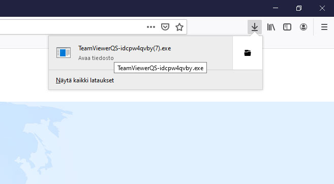 Tiedosto tallentuu koneelle ja se pitää suorittaa. Firefox selaimessa sen saa suoritettua klikkaamalla selaimen oikeassa yläkulmassa olevaa, sinistä nuolta: